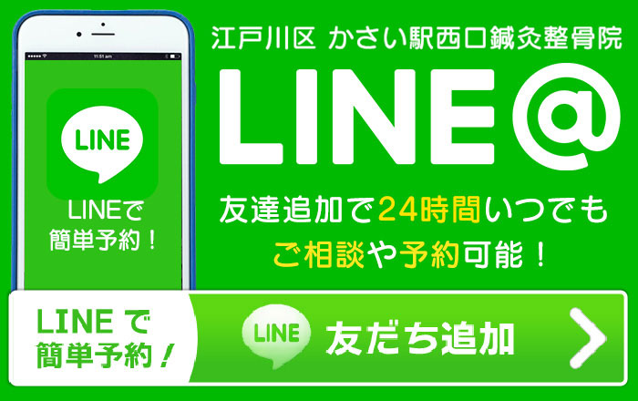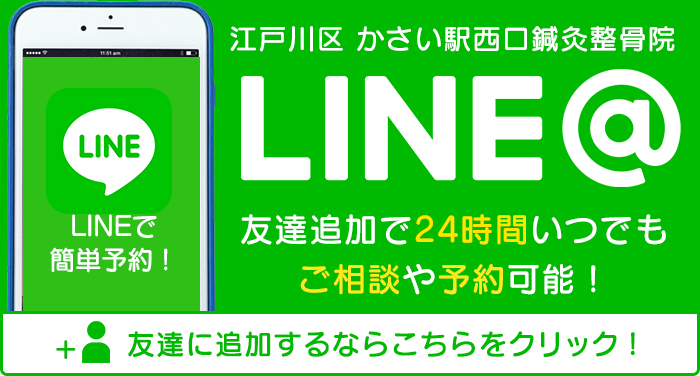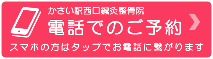 まずはお気軽にWEB、お電話、LINEからご予約ください。お電話の際には「かさい駅西口鍼灸整骨院です。」とスタッフが電話に出ますので、「ホームページから予約したいのですが」とお伝えください。