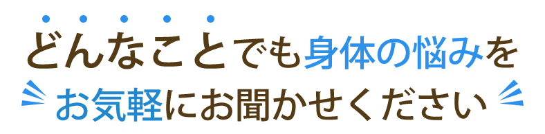 辛い痛みの部分や今悩んでいることなどなんでもご相談ください。